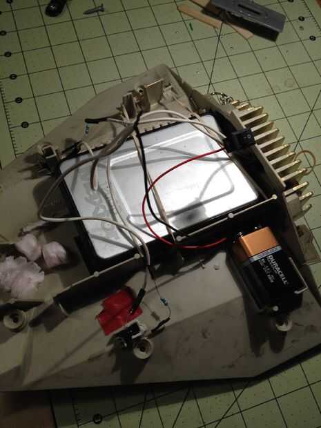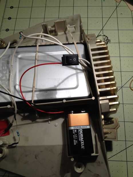 Puesto que no podía ajustar un cubo poder los LEDs sólo usé una mezcla de 9V en un lado. Al otro lado de la nave dispone de un panel extraíble donde utilizado un interruptor. De esa manera puedo convertir los LEDs o desactivar independientemente de si la unidad está enchufada.
