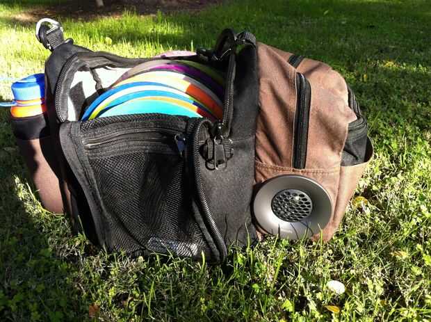 Esta es una manera simple de añadir altavoces permanentes a su bolso de golf del disco, también funcionaría bien en una mochila o cualquier otro bolso. Este proyecto me tomó menos de media hora, es muy fácil y los resultados son muy satisfactorios.
