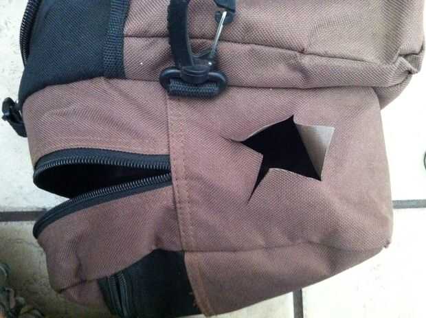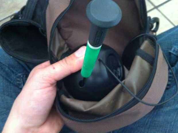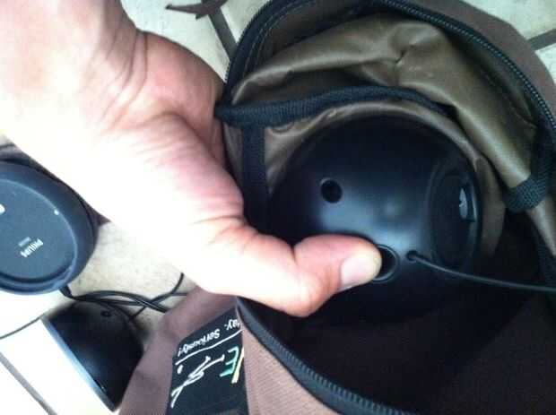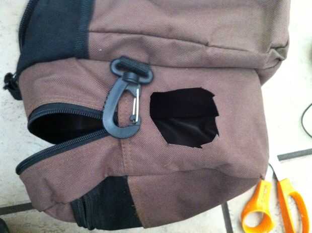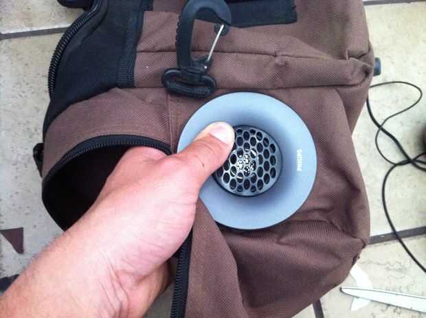 siguiente cortar un agujero en su bolsa lo suficientemente grande que puede caber en la parte frontal del altavoz a través de él, pero no demasiado grande, debe ser un ajuste apretado de la semi.