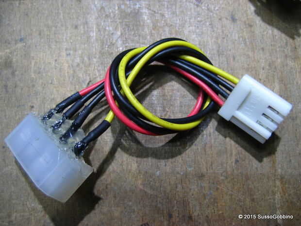 También hice un adaptador de Molex floppy rápido, como no quiero tirar el cable floppy real de mi caja de la PC. Ya tengo un Molex que sale de él.