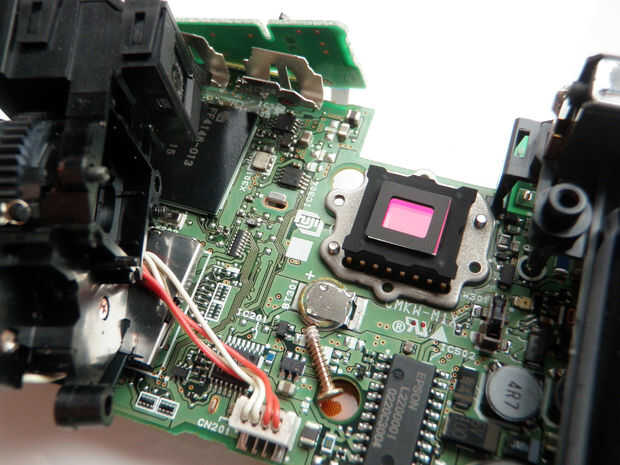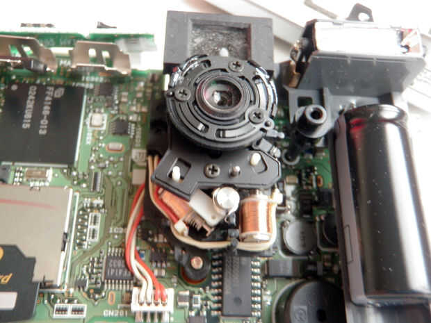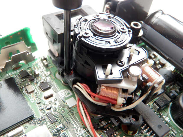 Separar cuidadosamente el conjunto de la lente de la placa de circuito para encontrar el chip CCD. Dejar de lado estos tornillos en lugar seguro también.