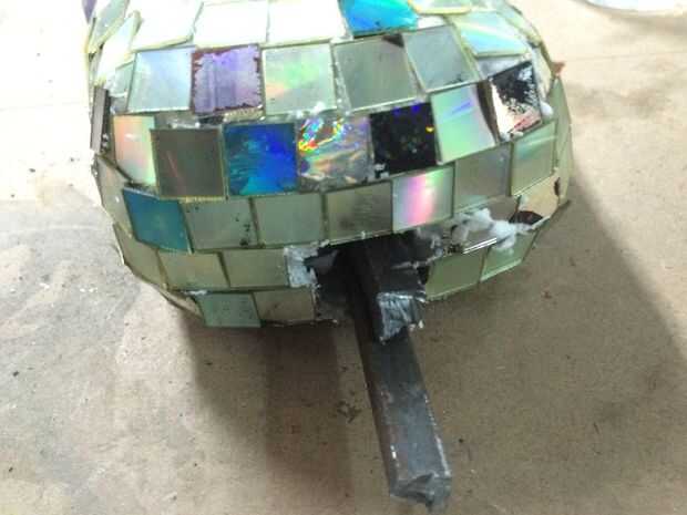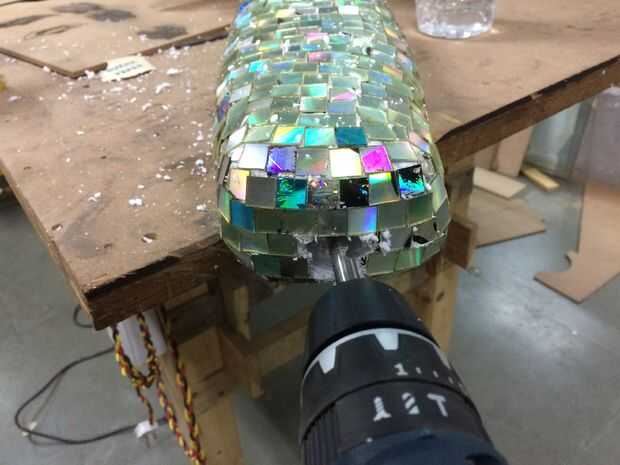 Por desgracia estaba casi terminado cubriendo el martillo cuando me di cuenta que fue colgando en el ángulo equivocado y necesita tener algo de peso extra, así que tuve que hacer alguna cirugía. Puede utilizar cualquier cosa pesada para añadir peso, pero opté por usar unas varillas de acero. Te recomiendo conseguir el peso adecuado antes de empezar a pegarse en las plazas, pero si desea hacerlo más tarde, no es demasiado difícil. Sólo sacar algunas plazas, perfore un agujero, meter en su peso y tápelo de nuevo. Nadie sabrá que cometió este error (a menos que usted publique en internet para que todos puedan ver).