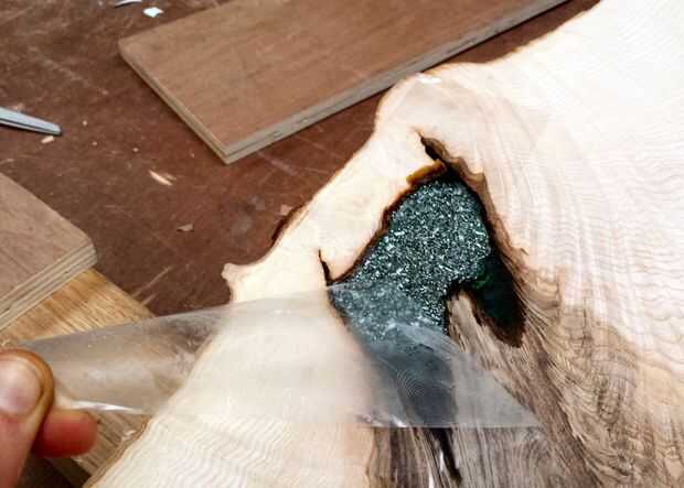 Así que este es el vacío que se llena y LEDifyed. Básicamente utiliza la misma técnica como con la esquina, salvo esto se llena de debajo, y poco policarbonato reparación de cinta se utiliza para retener la resina.
