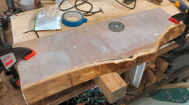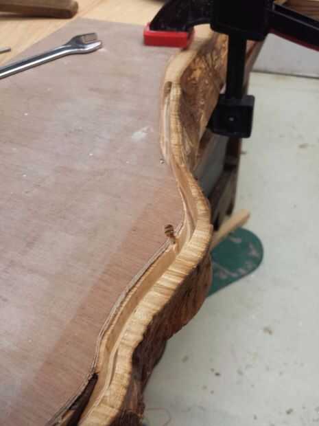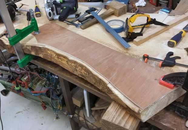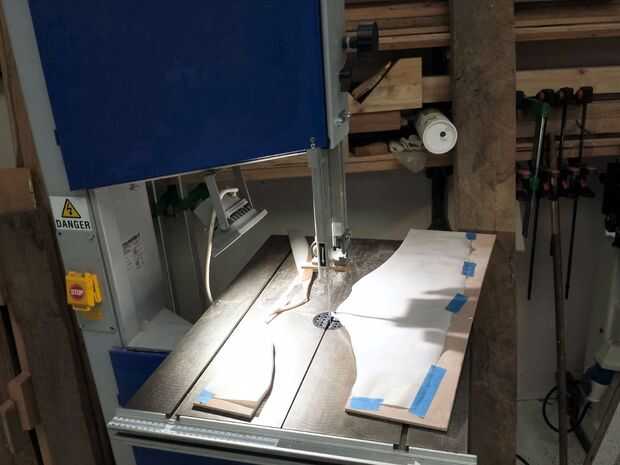 La forma se cortó hacia fuera en la Sierra de cinta, y el capas entonces fue fijado a la losa (foto 4), donde fue utilizado como una plantilla para una broca guiada.
