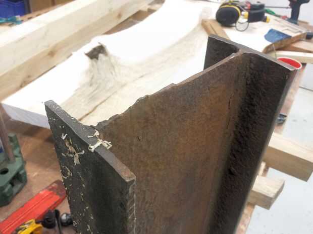 Así que esta chatarra de acero viga ha sido golpeando un buen mientras tranquilamente esperando su turno para ser utilizado en un proyecto. Pensé que insertaría hacer una pierna algo fresca, así como actuando como una corbata de moño un poco para detener la gran grieta de más apertura.