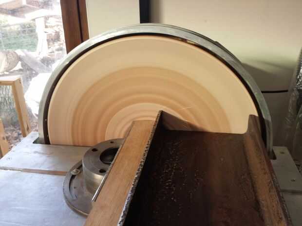 De todos modos, mi ángulo de pulido era un poco descuidado, al cortar a la medida y ambos extremos necesitan corte recto para arriba. Por suerte la lijadora de disco grande que hice fue casi lo suficientemente grande como para llevarlo a cabo con estilo.