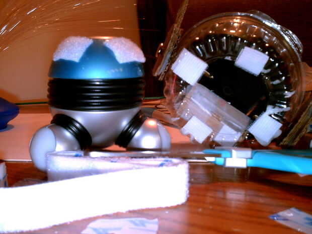 Alternativamente, puede simplemente cinta el cuerpo del robot en el vibrador de átomo como lo hice al principio. Si utiliza este método, deberás abrir el envase de muffin para acceder al interior para empujar el botón. Esto es más difícil entonces puede parecer que una vez que el vibrador está activado, tu robot va a querer run amuck en un loco frenesí de disco. También debe asegurarse de que el cuerpo del robot está bien posicionado. Si el cuerpo está inclinado demasiado, el robot se vuelque cuando empieza a temblar. Recuerde que usted también tendrá que encender la luz dentro del cuerpo del robot si usted planea usar una luz.