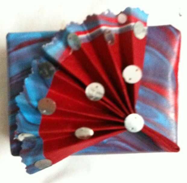 Decoración no tiene que ser caro. Cuando un poco de creatividad, papel de embalaje de regalo y arte, tiene todo que lo necesario para crear arte de la pared barato rápido.MaterialesRegalo ($2,99 en el pasillo de salida a Homegoods)TijerasCintaPlantil