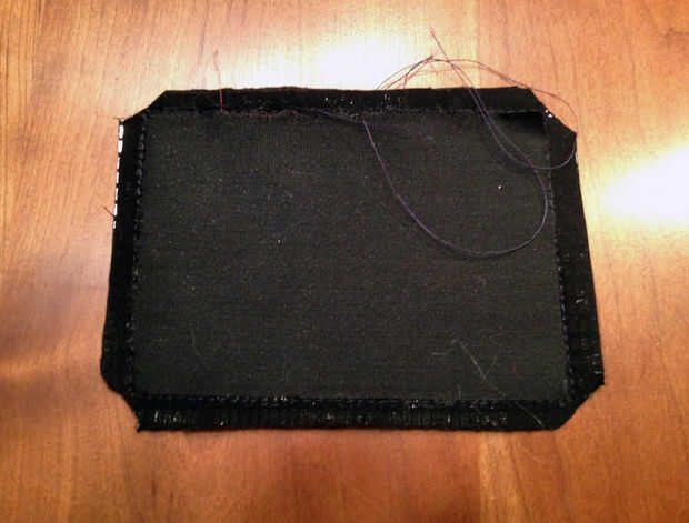 Cuando haya terminado, enganche las esquinas y sacar su derecha del rectángulo. Yo no molestaba coser hasta la brecha, como más adelante será cubierto por el empate y la sección abierta no será notable.