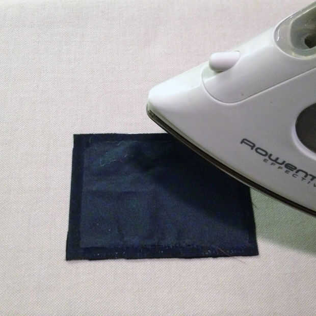 Si se usa algodón o una tela natural que responde bien al calor, hierro el arco plano (Me salté este paso ya que estaba indeciso al hierro en la cara vista de la tela del disco!).
