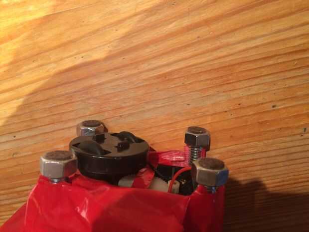 Además, experimentar con cómo ayudar los estabilizadores con cinta adhesiva a la caja de engranajes con cinta adhesiva. Pongo mi estabilizadores en un ángulo deliberadamente desigual para dar el robot un poco más 'tipo 'de clunk. Esto se muestra en las fotos anteriores.