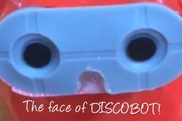 he utilizado el reverso de un botón de un controlador de juegos viejos para hacer una cara de DISCOBOT. Resultó muy lindo, así que si usted quiere añadir una cara, usted puede. ¿Tal vez dibujar una cara sonriente en la cinta? Depende de usted.