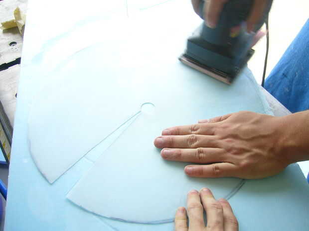 Para mantener la forma de cono, colocar una tira de cinta adhesiva en el exterior y, a continuación, aplicar adhesivo epoxi en el interior de la forma de cono para hacer un puente de empalme. Una vez curado, retire la cinta y la arena por el exceso de epoxy.