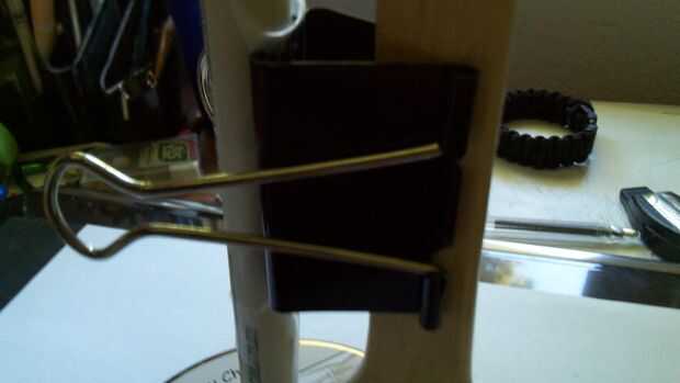 Clip el cepillo con el clip de carpeta para que el pincel en cerca del centro del CD y está ejerciendo fuerza sobre el CD. Aplicar la pintura en la CD frente a cabeza del cepillo. Use una mano para empujar hacia abajo desde la parte superior del tubo de papel para mantener la presión del cepillo del tubo recto. Utilice un dedo de la otra mano para girar el CD alrededor del tubo. La plataforma actuará como una brújula y difundir la pintura uniformemente alrededor de la CD en un círculo. Añadir más pintura en el CD si es necesario.