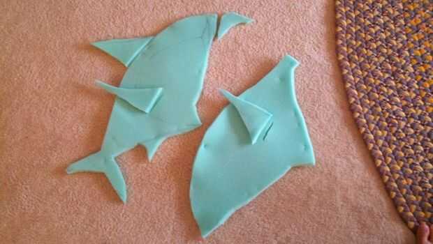 • Trace el pedazo más grande de tiburón de espuma sobre la tela de disconium.