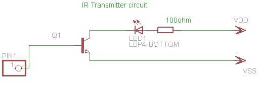 El circuito de la imagen se adjuntará a P1. La resistencia puede cambiar dependiendo del IR LED que tienes. Verificar las especificaciones y asegurar que la resistencia es lo suficientemente grande como para su aplicación.