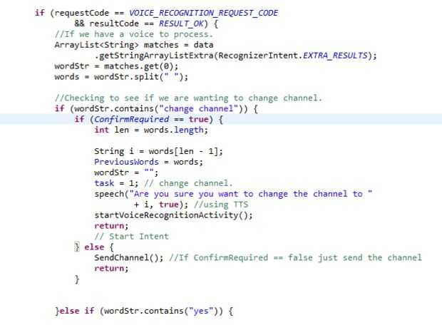 Hay una matriz multidimensional en la parte superior de MainActivity.java que se llama canales. Esta matriz es lo que le permite a la aplicación qué canales para cambiar a. Por ejemplo, quería cambiar de canal a la CNN, dirías "Cambio canal CNN" que convierta a CNN en el canal correspondiente y lo enviará a la aplicación de la UDP.