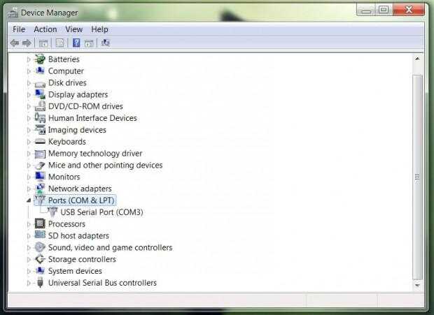 Abra el administrador de dispositivos y buscar puertos (COM & LPT).