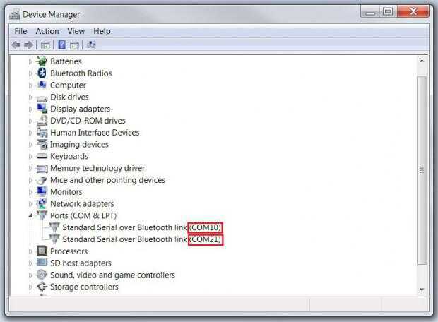 - Ir a puertos (COM & LPT) y anote los puertos COM utilizados por el Bluetooth.