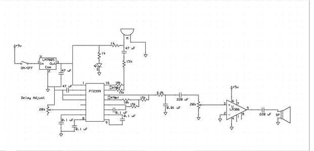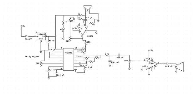 Yo recomendaría también profundamente usted montar este circuito a algo o ponerlo en una caja de proyecto. El PT2399 es un CMOS IC y es muy sensible a la electricidad estática, junto con el hecho de que los dedos fácilmente introducen ruido en el circuito. Un trozo plano de madera hotglued sólo a él trabajaría demasiado, además se ve mucho mejor que sólo un disquete circuito colgando hacia fuera en el viento.