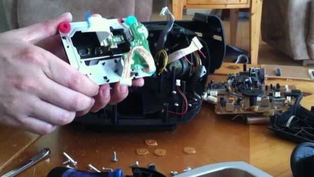 Empezaremos quitando todos los tornillos exteriores. Este modelo tiene convenientemente todos los tornillos situados hacia fuera en el abierto, pero algunos pueden tratar de ocultar los tornillos en el compartimento de las pilas o las etiquetas engomadas inferiores, así que comprobar allí si no te lo abre después de quitar los tornillos visibles. Con los tornillos quitados ahora deberíamos ser capaces de abrir la caja y exponer el circuito interior. Los cables pueden desconectarse rápidamente doblando el alambre hacia adelante y hacia atrás en la soldadura conjunta en el tablero, o un par de tijeras para hacer el trabajo incluso más rápido. Desmontar el boombox es ahora una simple cuestión de encontrar todos los tornillos sosteniendo juntos y desconectar las conexiones eléctricas.