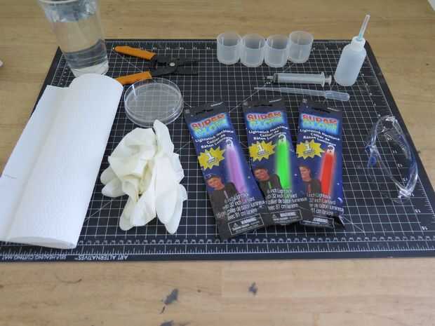 Detrás de las omnipresentes decoraciones para fiestas de danzas es químico. Gran amante de la fiesta Super-nerd químico. Mientras que glowsticks y otras patentes de quimioluminescencia eran originalmente para la Marina (probablemente al partido, bien maaaybe para respuesta de emergencia), ya que han proliferado por todas partes. Este proyecto introduce la idea de las reacciones químicas mientras mostrando el arte y la belleza que puede venir de química compleja. Después de todo, la ciencia es hermosa.