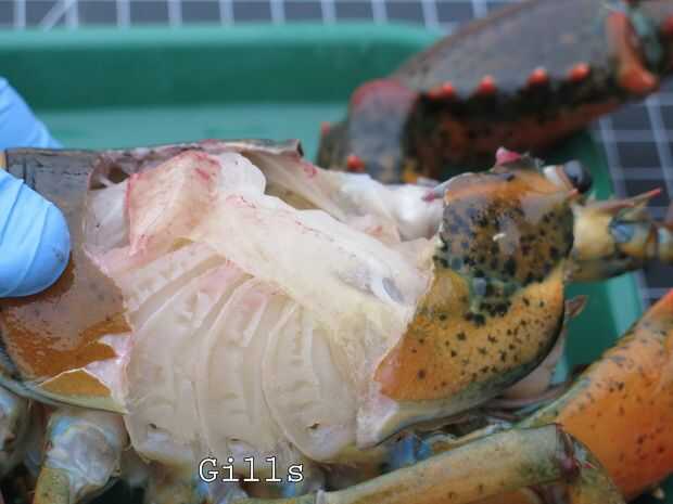 Si usted pela detrás de las branquias, puede ver más un definido exoesqueleto (además de su concha) que ayuda a dar protección y estructura de los interiores de la langosta.