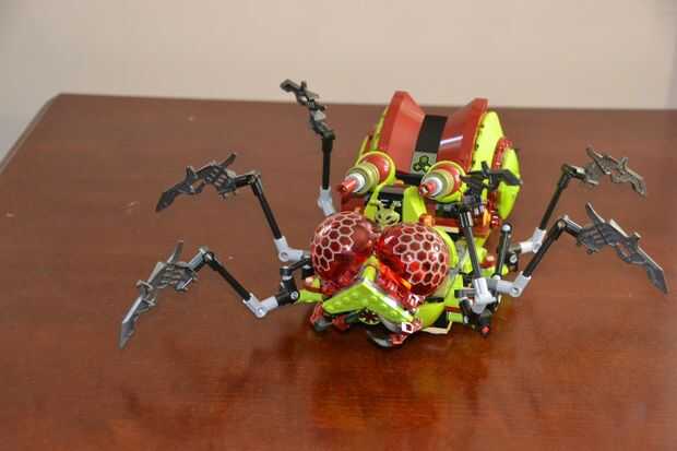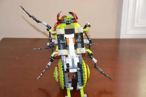 Este juego tiene una característica genial, que cuando empujas el error a lo largo de una superficie plana, las seis patas se mueven hacia arriba y hacia abajo para hacer que parezca como si fuera un insecto arrastrándose en el suelo. Y funciona realmente bien. Pero pensé que de alguna manera podría hacer un ajuste de motor de Mindstorms. Esto podría funcionar con algunas modificaciones para funciones de la energía, pero por desgracia, no tengo ninguna. Después de construir este modelo en LDD (Lego Digital Designer) y jugando con el espacio durante unos días, finalmente encontré una forma que funciona.