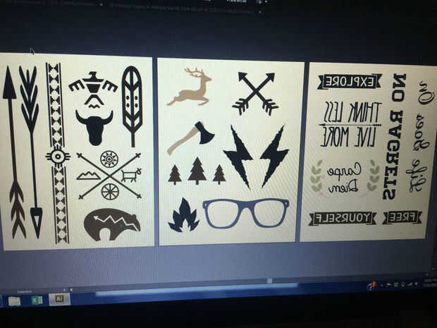 Prefiero utilizar Illustrator para hacer tatuajes porque imprimir realmente agradables y solo hay que ver mejor en general. Para este proyecto he descargado un Tribal Icon Set y algunas fuentes de la sección de productos libres de mercado creativo. (Comprobarlo cada semana!!!! Impresionante ¡ y gratis!) Entonces utilicé fragmentos de ellos para hacer tres hojas diferentes de tatuajes para imprimir.