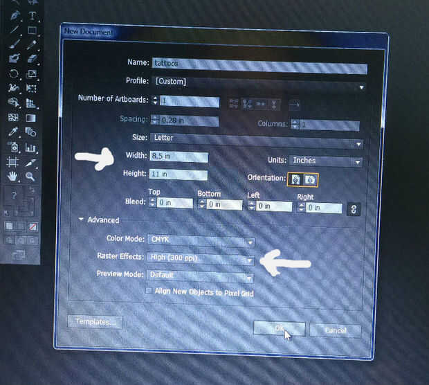 - Nombre de tu documento y asegúrese de que el tamaño se establece en 8.5 x 11 pulgadas y el ppi se ha fijado en 300.