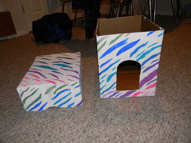 Montar piezas adicionales lo que cada vez que usted ha hecho para su caja, como Torres del castillo, mini balcón, caja de arena y otras cosas de creativos lindo gatito.