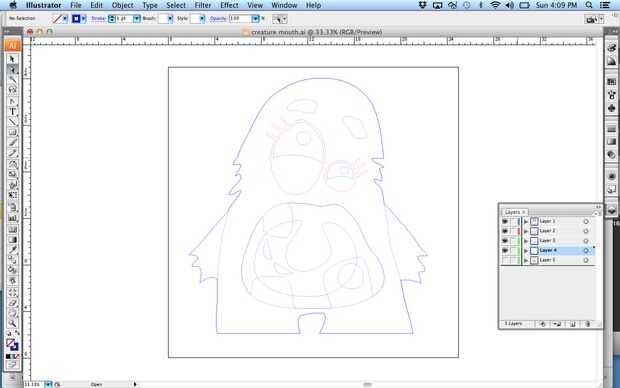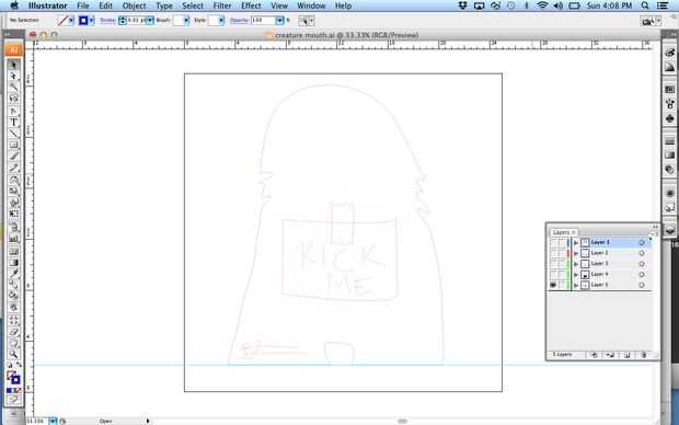 Aquí es donde necesita algunos conocimientos adicionales de Illustrator. No le puedo dar las instrucciones exactas para sus diseños, pero usted tendrá que copiar y pegar secciones de capa a capa para asegurarse de que va toda la línea arriba correctamente.