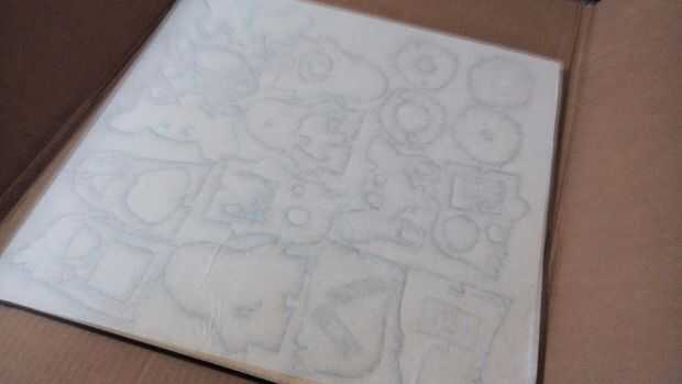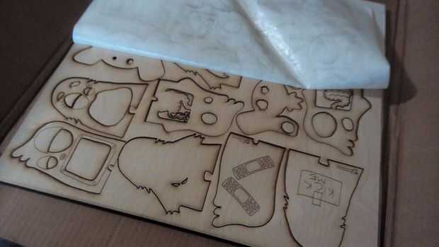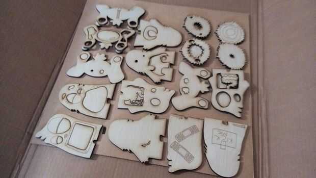 Ponoko envía mis artículos con una capa de papel por ambos lados. Después de pelar la capa de papel de un lado, las piezas se cayeron hacia fuera, y pela el papel del otro lado de las piezas.