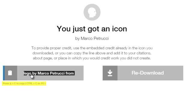 He guardado todos los iconos quería en una sola carpeta para facilitar el acceso más adelante y también actualizado un archivo de texto con cada icono nombre e información de diseño de atribución como fue a lo largo - volver y hacerlo más tarde son un dolor así que asegúrate de hacerlo a medida que avanza. Hacen súper fácil para usted - sólo copia la información de reconocimiento disponible al descargar cada icono y añadir a tu archivo de texto.