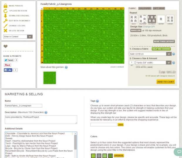 Jugar con las opciones hasta que esté listo para ordenar a su tela - Asegúrese de que usted pide la tela correcta y la longitud correcta etc.. No te olvides de atribuir los diseñadores icono.