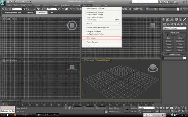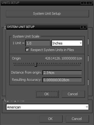 En 3ds Max, es muy fácil cambiar la configuración de unidades. Simplemente vaya a personalizar > configuración de unidades. Se puede cambiar qué categoría de unidad que desea trabajar, así como que la unidad será la base de la unidad. (La unidad base es que las medidas de unidad específica se basan alrededor. Por ejemplo, si tengo mi unidad base cm y crear un 1 x 1 cm x 1 cm caja, tamaño de la caja se mostrará como 1 x 1 x 1. Pero si cambio mis unidades base a mm, tamaño de la caja ahora se muestra como 10 x 10 x 10, aun cuando el tamaño físico de la caja nunca ha cambiado.)