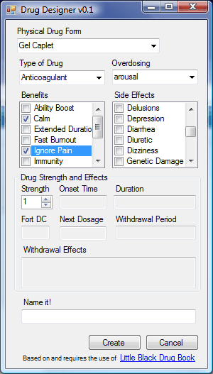 Su medicamento personalizado debe tener algún efecto principal y esto se conoce como beneficio de la droga.  Usted puede elegir tantas como quieras pero tratar de ser realistas y guardar el farmacéutico equilibrado para el juego.   Que no desea seleccionar todos los beneficios, sobre todo porque algunos de los beneficios son mutuamente excluyentes.