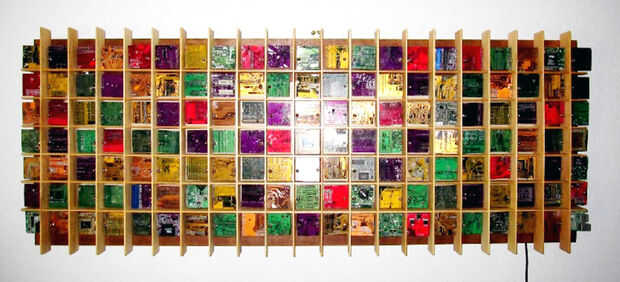 Usted notará que el tilo se extiende más allá del borde superior e inferior de la placa trasera, pero parada justo al borde de la izquierda y derecha. Esto es balanceado por los paneles de placa madre que extienden más allá de la izquierda y derecha, pero no incumple los límites superiores e inferiores. Nunca he sido de estricta "framing". Si bien esta pieza definitivamente tiene una forma rígida, rectangular, usted podría hacer el caso que estas condiciones de borde le dan a la pieza un borde "suave".