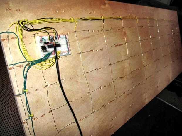 Comienza con la perforación de los orificios en la placa trasera. Si eres dispuesto, cabeza encima a la impresora de gran formato local e impresión de su patrón de LED y el hilo. Esta cinta abajo y perfore los agujeros (y todos los agujeros tan perpendicular como sea posible). Medir cada uno funcionará igual de bien, sin embargo.