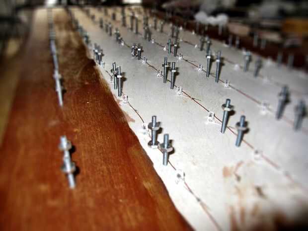 Cuando perforan los agujeros, lo hice así ligeramente más pequeño que las barras. Esto era para que las varillas autorroscante un poco y no requieren estabilización pernos/pegamento adicional.