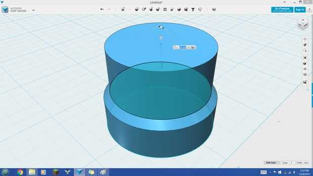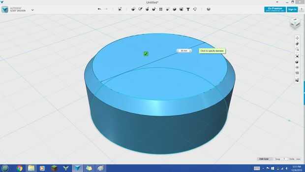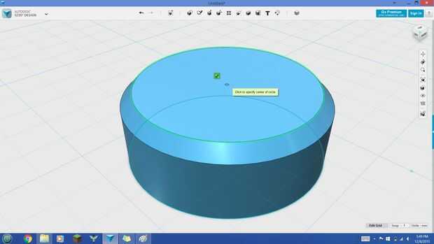 Crear otro dibujo de un círculo en la parte superior del cilindro. Asegúrese de que el centro de este círculo se alinea con el centro del cilindro. Este círculo tendrá un diámetro de 30 mm a 30 mm de diámetro del cilindro. Entonces saca el círculo hasta 14 mm.