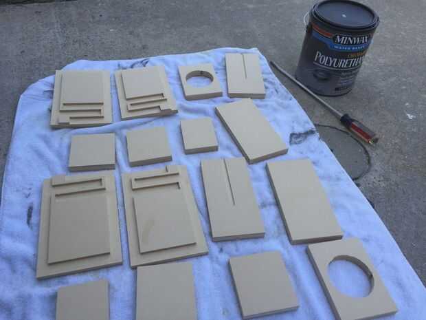El primer paso antes de pegar es pintar las superficies internas con poliuretano transparente o goma laca o algo que sellarán la madera interna. Incluso puede usar paint. Yo sólo cubrió las superficies visibles no las superficies a cubrir con pegamento o unirse a. Yo mío había pintado con un poli a base de agua y luego dejarla secar por unas horas.