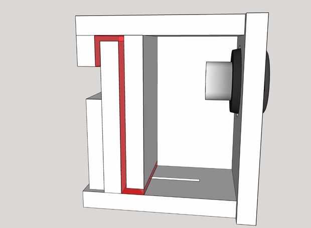 Cilindros redondos ofrecen menos resistencia de aire de tubos rectangulares, pero en este caso, hice un trade off. Corre el riesgo de generar reflexiones de frecuencia más interna o ruidos de viento a través del puerto. Estos son conductores relativamente pequeños, así que no estoy preocupado por los grandes volúmenes de aire en movimiento. Si fuera un subwoofer grande, los números serían muy diferentes y se necesitarían otras consideraciones de diseño, es decir muy estrechos puertos no funcionan tan bien.