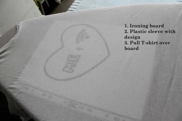 Colocar el papel copiado sobre la camiseta con la cara brillante hacia lo