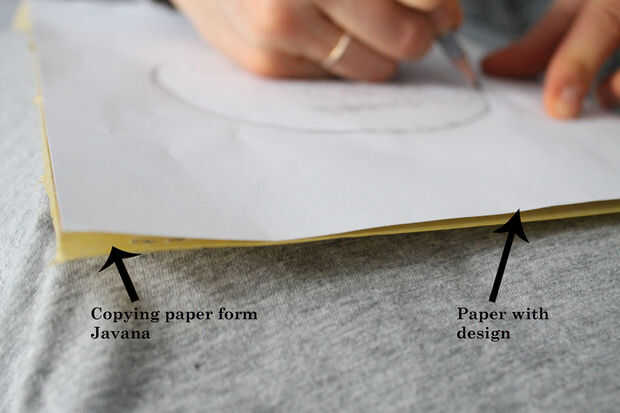 Lugar su papel diseño arriba y con un lápiz - esto dejará una marca amarilla