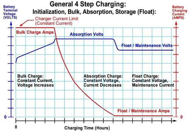 De carga: Baterías como cargarse de una cierta manera, especialmente cuando han sido profundamente descargadas. Este tipo de carga se denomina carga regulada de multi-step, o simplemente 'smart de carga'. Asegúrese de que obtener un cargador inteligente y no un tonto cargador 1 paso cram it en allí. El perfil típico de carga de un cargador inteligente es como sigue: