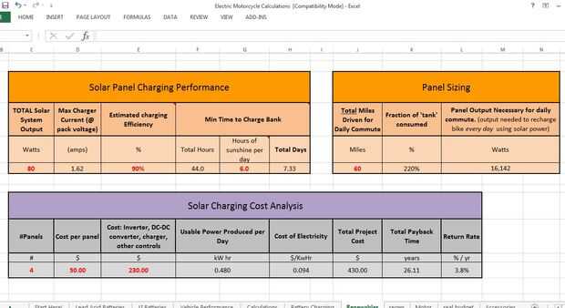 Calculé que necesito 16.000 vatios de paneles para cargar completamente la bicicleta todos los días en mi área de Ohio. Tan energía solar 100% no era incluso cerca de viable aquí. Tal vez si vivía en Florida y tenía un viaje diario más pequeño.