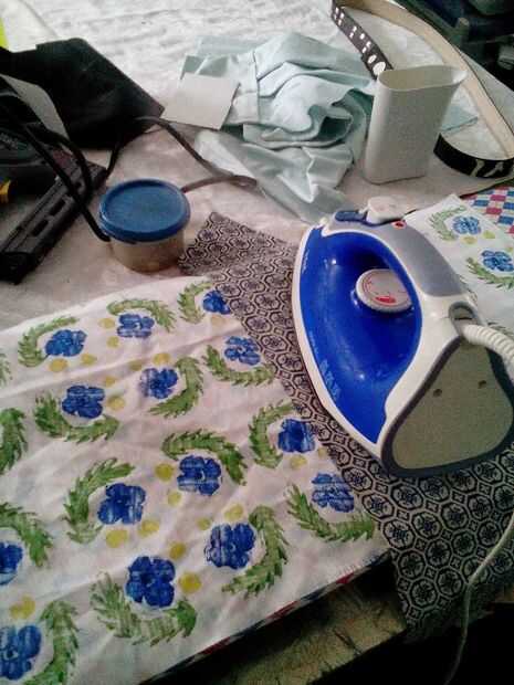 Después de imprimir su tela (o telas, si lo has hecho más de uno) Coloque un paño sobre la cara impresa y presione en el ajuste de la tela que tienes (era el más alto porque usé algodón.) Después de planchar la parte delantera, dale la vuelta y el lado equivocado de la tela y del hierro. Asegúrese de que tenga la plancha de vapor y poner el vinagre agua en ella. No dolerá vinagre en realidad ayuda a limpiar el vapor de la plancha construcción agujeros de calcio del agua dura. Y vinagre hace tela aferrarse a teñir.