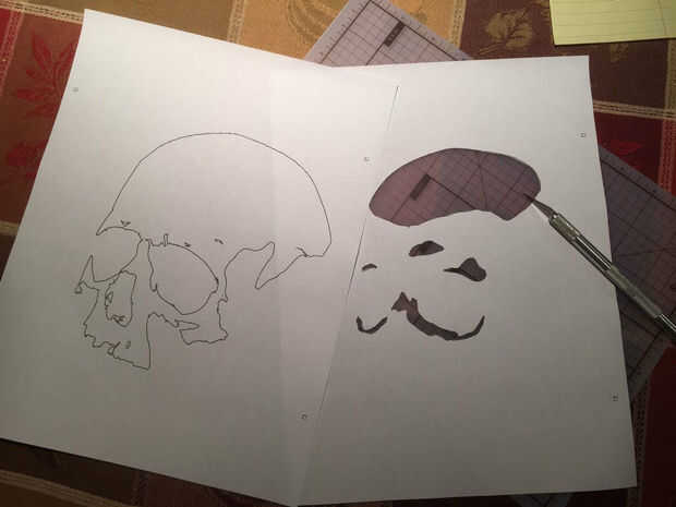 Cuando termine, imprimir sus hojas de dos contorno por ocultar las otras capas a su vez. Estos son los patrones que vas a transferir a la calabaza a la guía de corte.