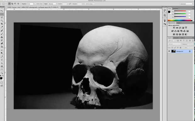 Carga tu imagen en Photoshop y editar para quitar fondos (que negro). Si es una imagen en color, convertir a escala de grises o desaturar de blanco y negro. La escala para que encaje en tu lienzo de calabaza.